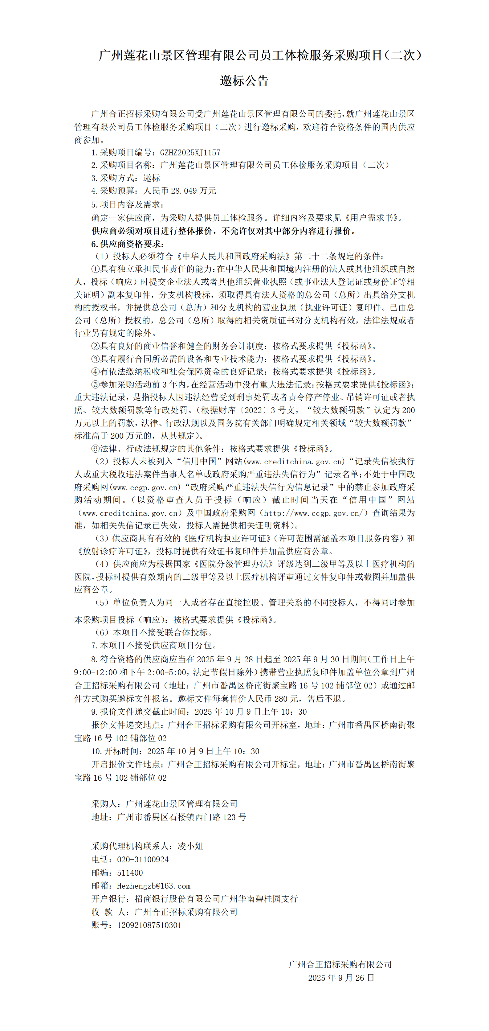 发布时间:2025年09月26日 作者:广州合正招标采购有限公司